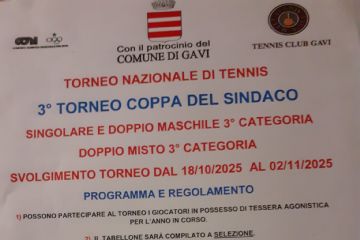 Evento passatoIl Tennis Club Gavi Carlo Bassano, dall'18 ottobre al 2 novembre, organizza il 3° torneo coppa Sindaco, con singolari e doppi maschili, singolari...