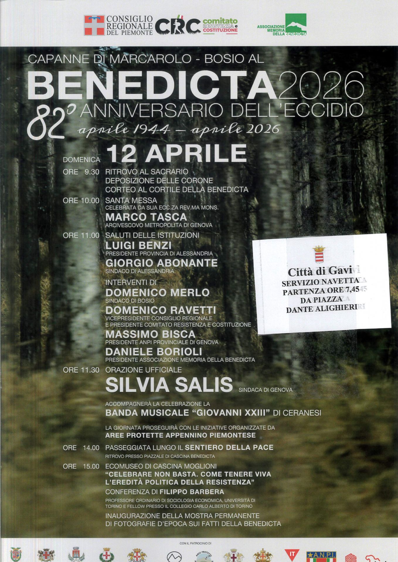 In occasione dell'82° anniversario dell'eccidio della Benedicta, è stata organizzata una giornata di commemorazione domenica 12 aprile.