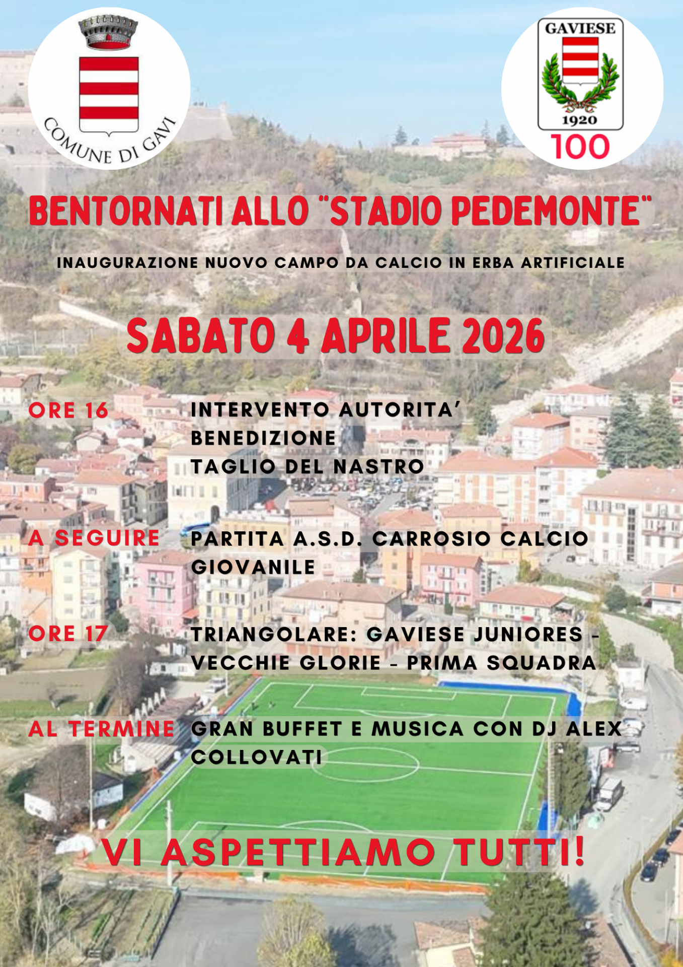 Sabato 4 aprile, a partire dalle ore 16, avverrà l'inaugurazione dello Stadio Pedemonte.