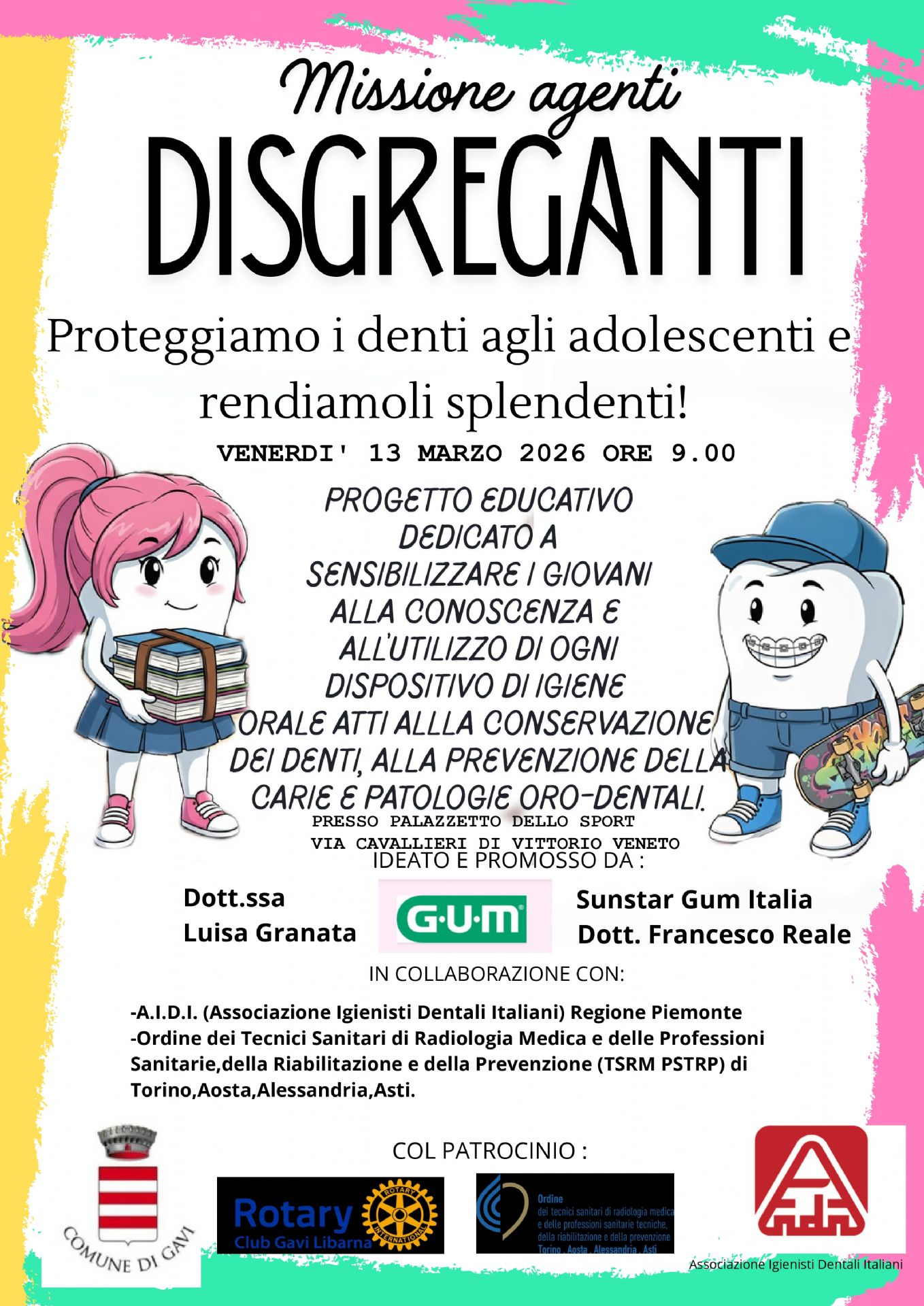 Si condivide l'iniziativa educativa di sensibilizzazione per l'igiene dentale che si terrà domani, venerdì 13 marzo 2026, alle ore 9:00 presso il Palazzetto dello Sport.