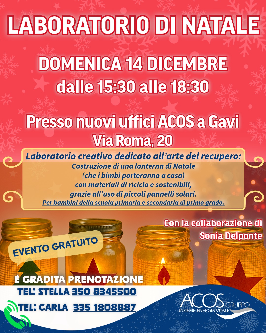 Il Gruppo ACOS promuove una speciale iniziativa natalizia aperta a bambini di tutte le età: un laboratorio gratuito che si terrà domenica 14 dicembre 2025, dalle 15:30 alle 18:30, presso i nuovi uffici di ACOS Energia e Gestione Ambiente di Gavi, aperti in Via Roma 20.