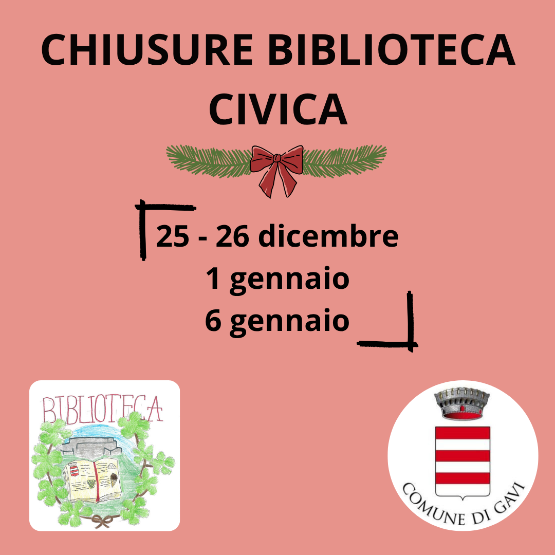 Si informa che la Biblioteca Civica rimarrà chiusa nelle seguenti date: