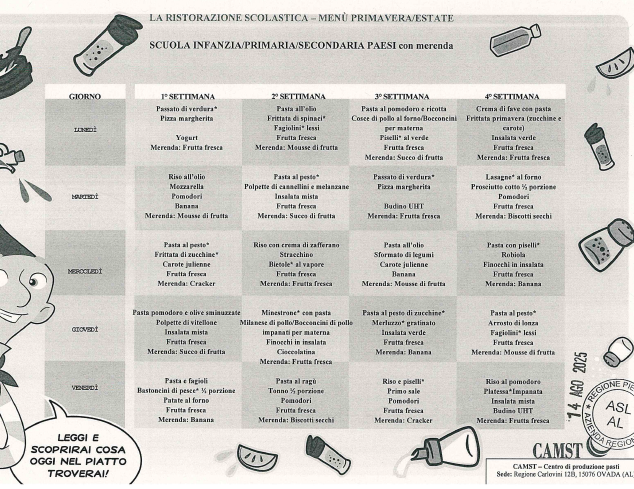 - il menù vidimato dall’ASL (con l'eliminazione delle merende),