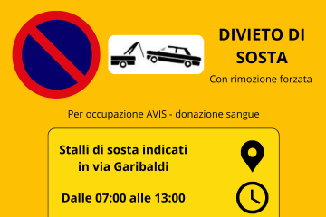 Divieto di sosta stalli via Garibaldi per AVIS - donazione sangue