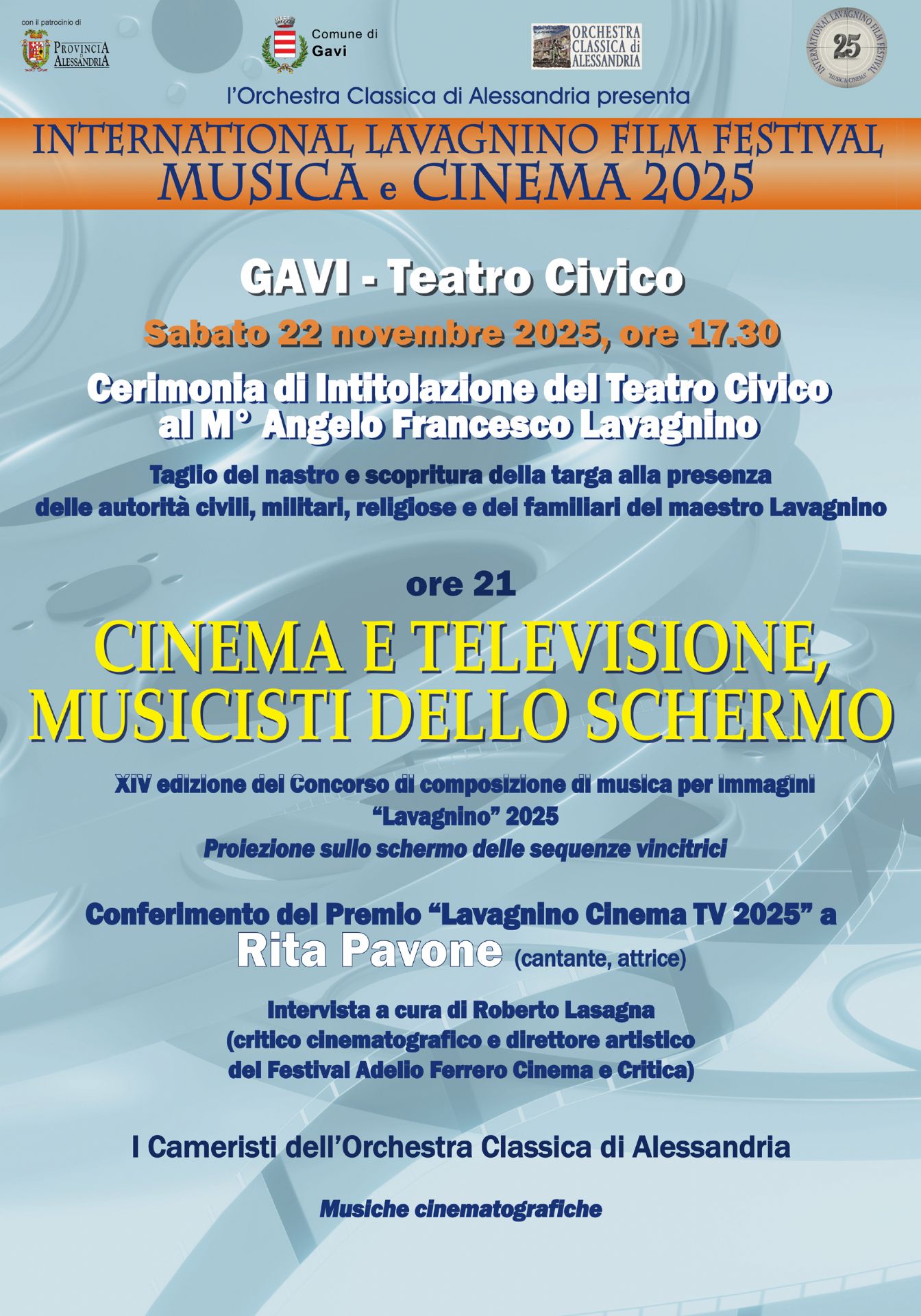 A seguire, alle ore 21, si terrà "Cinema e televisione, musicisti dello schermo", con proiezione delle sequenze vincitrici del concorso di composizione di musica per immagini "Lavagnino" 2025. Verrà conferito inoltre il premio "Lavagnino Cinema TV 2025" a Rita Pavone.
