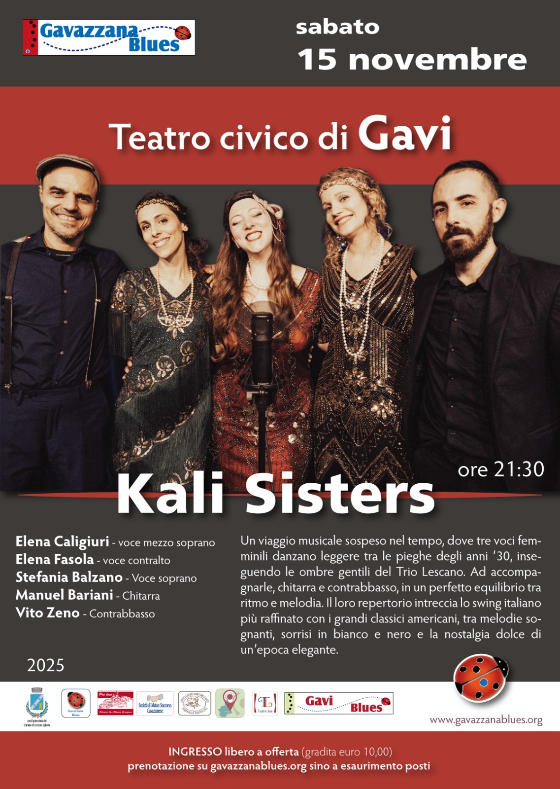 Sabato 15 novembre, alle ore 21:30, presso il Teatro Civico di Gavi, si terrà "Kali Sisters", uno spettacolo musicale ispirato agli anni Trenta del secolo scorso.
