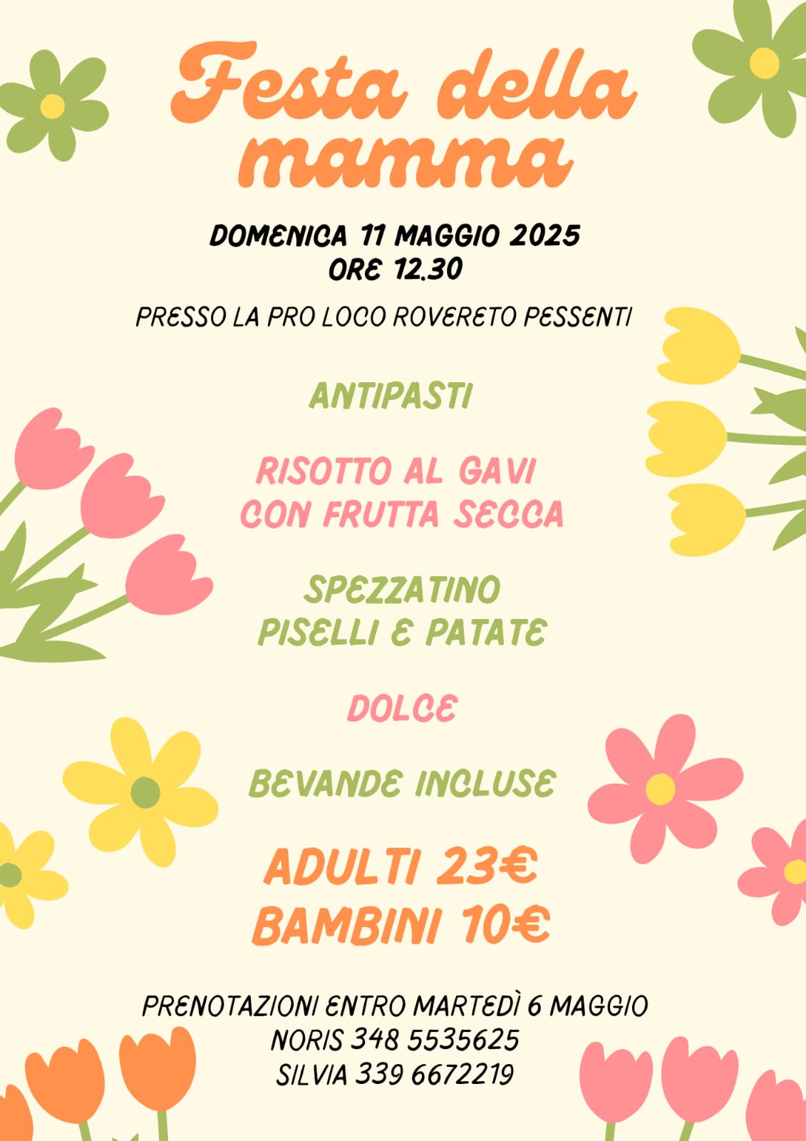 Il pranzo si terrà presso la Pro Loco di Rovereto Pessenti domenica 11 maggio dalle ore 12:30.