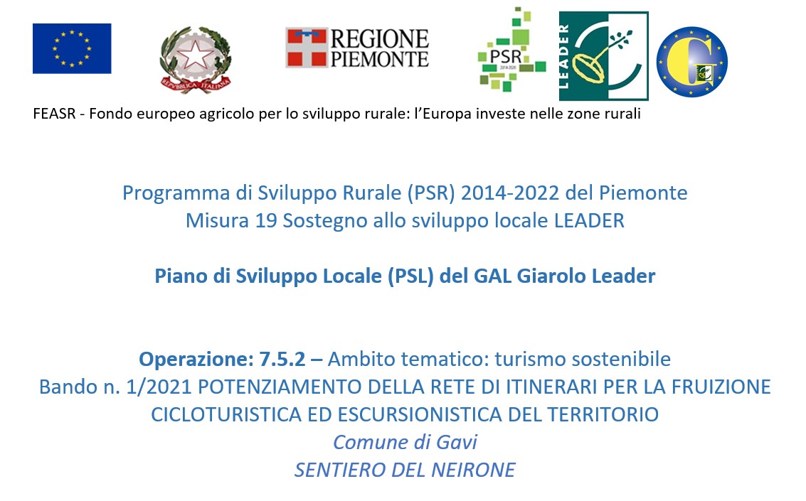 Bando n. 1/2021 potenziamento della rete di itinerari per la fruizione cicloturistica ed escursionistica del territorio - SENTIERO DEL NEIRONE